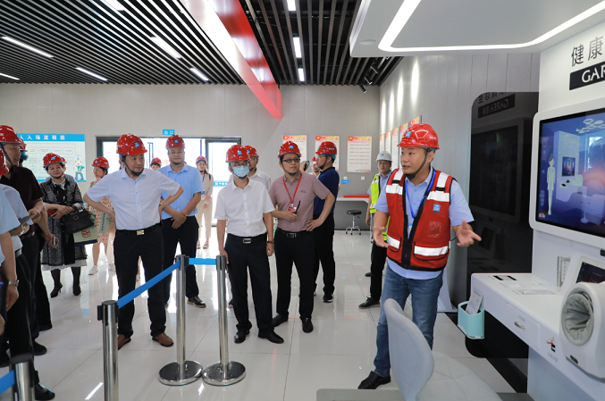 會(huì)后,全體會(huì)議代表來到由中建八局三公司承建的美丹家園三期項(xiàng)目現(xiàn)場,觀摩學(xué)習(xí)了工友一站式服務(wù)大廳、智能藍(lán)牙實(shí)測系統(tǒng)、VR安全教育系統(tǒng)、智能焊接機(jī)器人、智能抹灰機(jī)器人、新型電梯井防護(hù)等智慧建造技術(shù)。