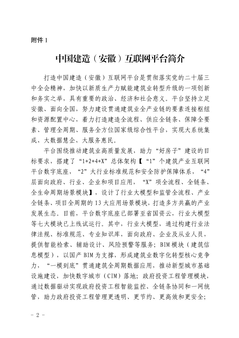 省部共建的中國建造(安徽)互聯(lián)網(wǎng)平臺(tái)目前已完成平臺(tái)底座和部分功能模塊的開發(fā),并在部分項(xiàng)目上試點(diǎn)應(yīng)用。為認(rèn)真落實(shí)省政府有關(guān)領(lǐng)導(dǎo)專題會(huì)議精神,現(xiàn)征集行業(yè)領(lǐng)域各類企業(yè)首批接入平臺(tái)。請(qǐng)各會(huì)員單位積極參與,填寫企業(yè)信息登記表(附件2)后發(fā)送至郵箱1343548194@qq.com。