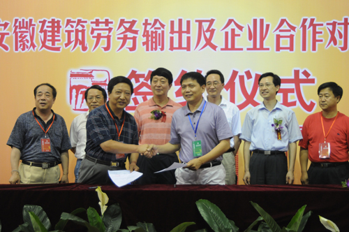 6月18日,安徽省住房和城鄉(xiāng)建設(shè)廳在合肥舉辦安徽建筑勞務(wù)輸出及企業(yè)合作對接會。來自北京、上海、天津、江蘇、浙江、新疆六省市的94家特級和一級知名建筑企業(yè),以及安徽本省精心挑選的247家建筑企業(yè)、83家建筑勞務(wù)企業(yè)參加了對接會。對接會上,共簽訂勞務(wù)輸出及分包合同211項,合同價款人民幣23.46億元、美元5000萬元,新增勞務(wù)輸出人員130036人。