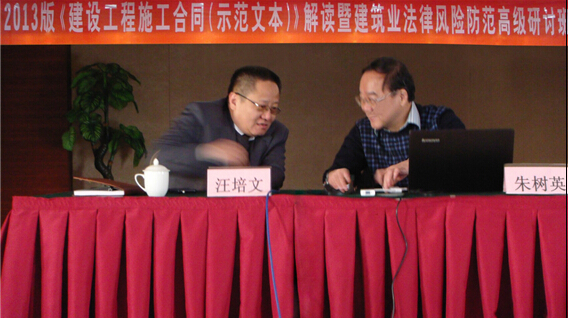 2013年版〈建設(shè)工程施工合同〉(示范文本)的解讀與運(yùn)用》的精彩演講。來(lái)自全省各建筑企業(yè)分管法律事務(wù)負(fù)責(zé)人(法務(wù)總監(jiān))及法律部、工程部、合約部、生產(chǎn)經(jīng)營(yíng)部、綜合部等各相關(guān)部門(mén)的管理人員、項(xiàng)目負(fù)責(zé)人及安徽省建筑業(yè)協(xié)會(huì)法律專業(yè)委員會(huì)(籌)成員共五百余人參加本次研討班,其間朱樹(shù)英與大家進(jìn)行了交流互動(dòng)并一一回答了相關(guān)問(wèn)題,本次研討班取得圓滿成功。