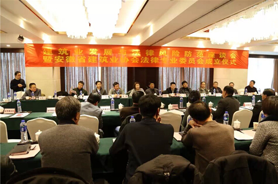 “建筑業(yè)發(fā)展與法律風(fēng)險(xiǎn)防范座談會(huì)”暨安徽省建筑業(yè)協(xié)會(huì)法律專業(yè)委員會(huì)成立儀式 2014年12月6日,“建筑業(yè)發(fā)展與法律風(fēng)險(xiǎn)防范座談會(huì)”暨安徽省建筑業(yè)協(xié)會(huì)法律專業(yè)委員會(huì)成立儀式在合肥成功舉辦。安徽省建筑業(yè)協(xié)會(huì)企業(yè)部許家宏主任首先代表協(xié)會(huì)對(duì)發(fā)來(lái)賀信的單位致答謝詞;協(xié)辦單位安徽省文一建工集團(tuán)童乃兵總裁在隨后致歡迎辭;協(xié)會(huì)新產(chǎn)生的法專委委員和政府建管、法制、人社、稅務(wù)部門(mén)、法院、新聞媒體等參會(huì)者進(jìn)行了充分的交流;省住建廳建管處張啟兵處長(zhǎng)做了重要發(fā)言;協(xié)會(huì)法定代表人王茂新秘書(shū)長(zhǎng)最后做了會(huì)議總結(jié)講話。本次會(huì)議是在十八屆四中全會(huì)“依法治國(guó)”方針貫徹實(shí)行背景下召開(kāi)的,對(duì)于建筑業(yè)依法維權(quán),行業(yè)自律,規(guī)范市場(chǎng)行為推動(dòng)產(chǎn)業(yè)健康發(fā)展等有著重要現(xiàn)實(shí)意義。安徽省建筑業(yè)協(xié)會(huì)法律專業(yè)委員會(huì)的成立