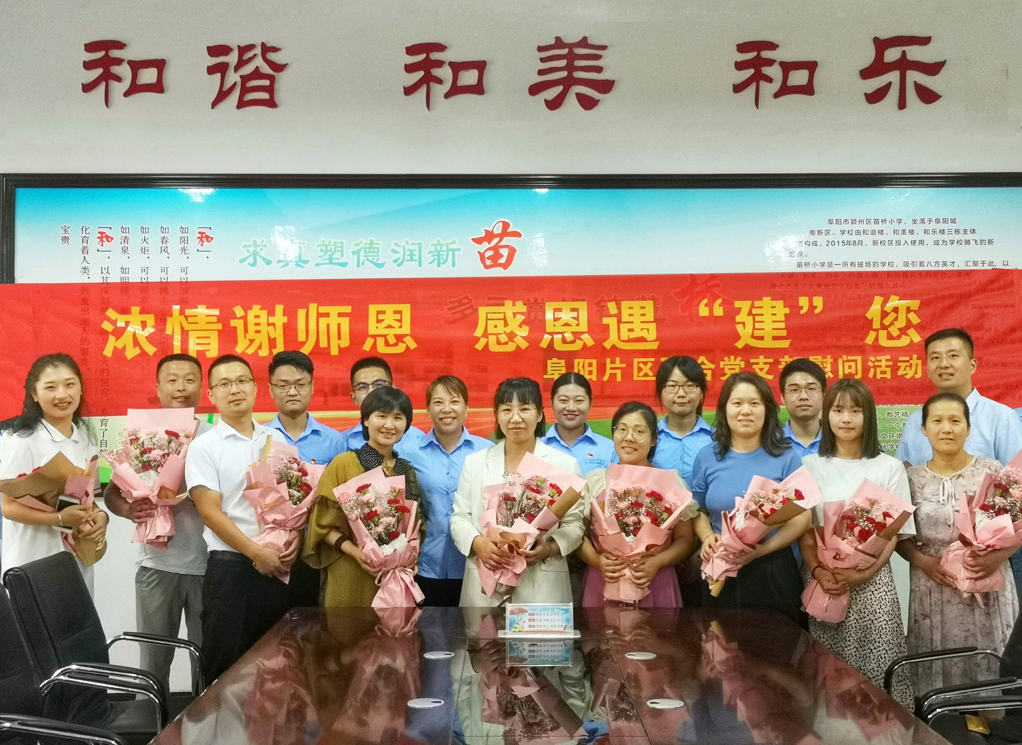 活動(dòng)中,支部黨員同志為每位老師獻(xiàn)上了鮮花,阜陽(yáng)苗橋小學(xué)校長(zhǎng)王英及學(xué)校其他代表老師對(duì)黨支部表示了感謝,而后一行人員就教學(xué)內(nèi)容和教學(xué)改革等與教師代表進(jìn)行了簡(jiǎn)單交流。