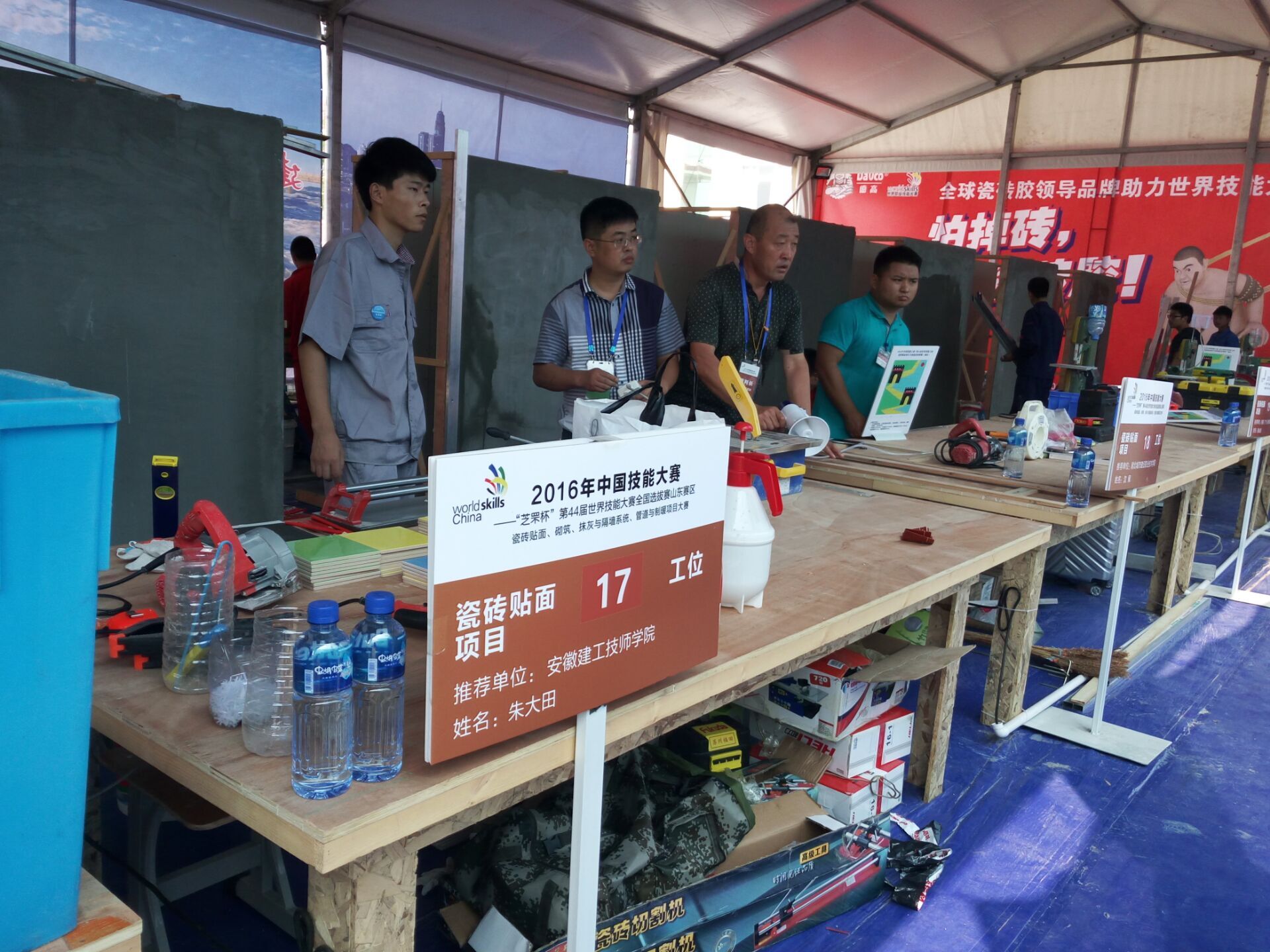 此次大賽安徽省派出2名選手參加了瓷磚貼面項目的比賽:安徽建工技師學(xué)院的朱大田、安徽建工集團有限公司的徐亮,兩人第一次參賽收獲頗豐、感受頗多、為以后的職業(yè)技能大賽積累更多的經(jīng)驗。安徽天筑建設(shè)集團張家倫是本次大賽安徽省唯一入選的裁判員并參加了瓷磚貼面項目裁判工作。