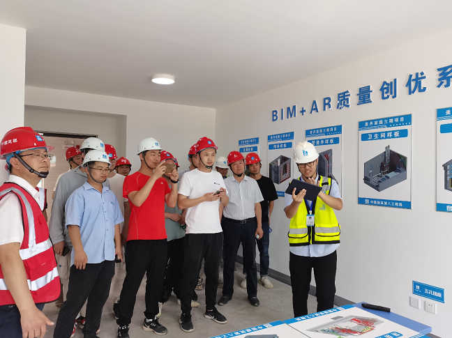 會(huì)后,全體會(huì)議代表來到由中建八局三公司承建的美丹家園三期項(xiàng)目現(xiàn)場,觀摩學(xué)習(xí)了工友一站式服務(wù)大廳、智能藍(lán)牙實(shí)測系統(tǒng)、VR安全教育系統(tǒng)、智能焊接機(jī)器人、智能抹灰機(jī)器人、新型電梯井防護(hù)等智慧建造技術(shù)。
