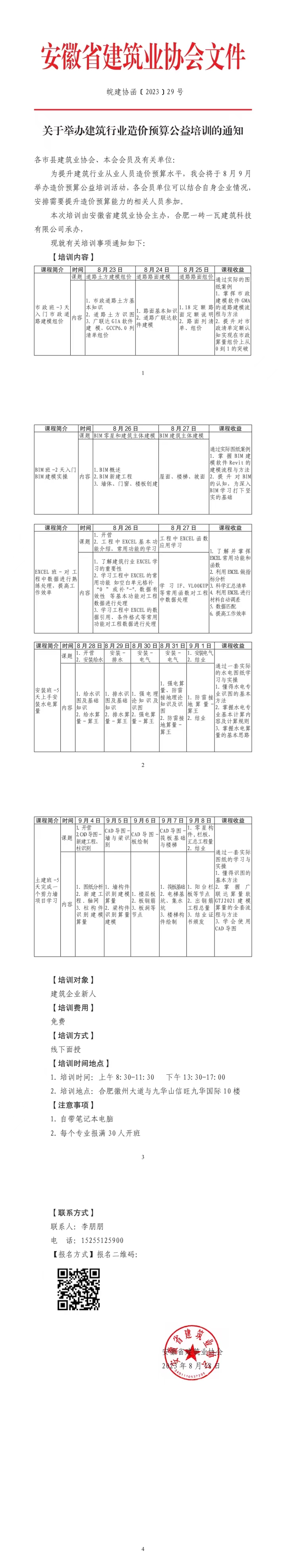 關(guān)于舉辦建筑行業(yè)造價(jià)預(yù)算公益培訓(xùn)的通知