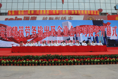 舉辦全省建筑勞務(wù)與企業(yè)合作對接會,在安徽尚屬首次。安徽省人大副主任朱先發(fā)、安徽省人民政府副省長倪發(fā)科、安徽省政協(xié)副主席王鶴齡、省政府副秘書長余焰爐、省住房城鄉(xiāng)建設(shè)廳廳長倪虹、副巡視員王茂新等領(lǐng)導(dǎo)出席了開幕式并剪彩。倪發(fā)科副省長在對接會上發(fā)表重要講話,他要求努力把安徽打造成為面向長三角、北京、天津、新疆等地的建筑勞務(wù)輸出基地。倪虹廳長表示,通過對接會的會展、洽談和交流等形式,加強了與建筑業(yè)強省的聯(lián)系,加強與大市場、大企業(yè)的聯(lián)系,暢通勞務(wù)輸出和對外開拓的新渠道,建立鞏固的長期合作關(guān)系、共謀發(fā)展的戰(zhàn)略伙伴關(guān)系。