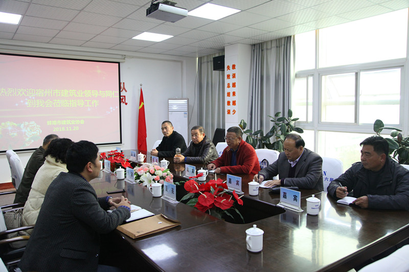 11月20日,宿州市建管處張化超副處長帶領(lǐng)宿州市建筑業(yè)協(xié)會一行五人來我會做工作訪問和交流。蚌埠市建管局副局長于慧,蚌埠市建筑業(yè)協(xié)會秘書長陸虎,綜合辦負責(zé)人夏亮參加了工作座談。