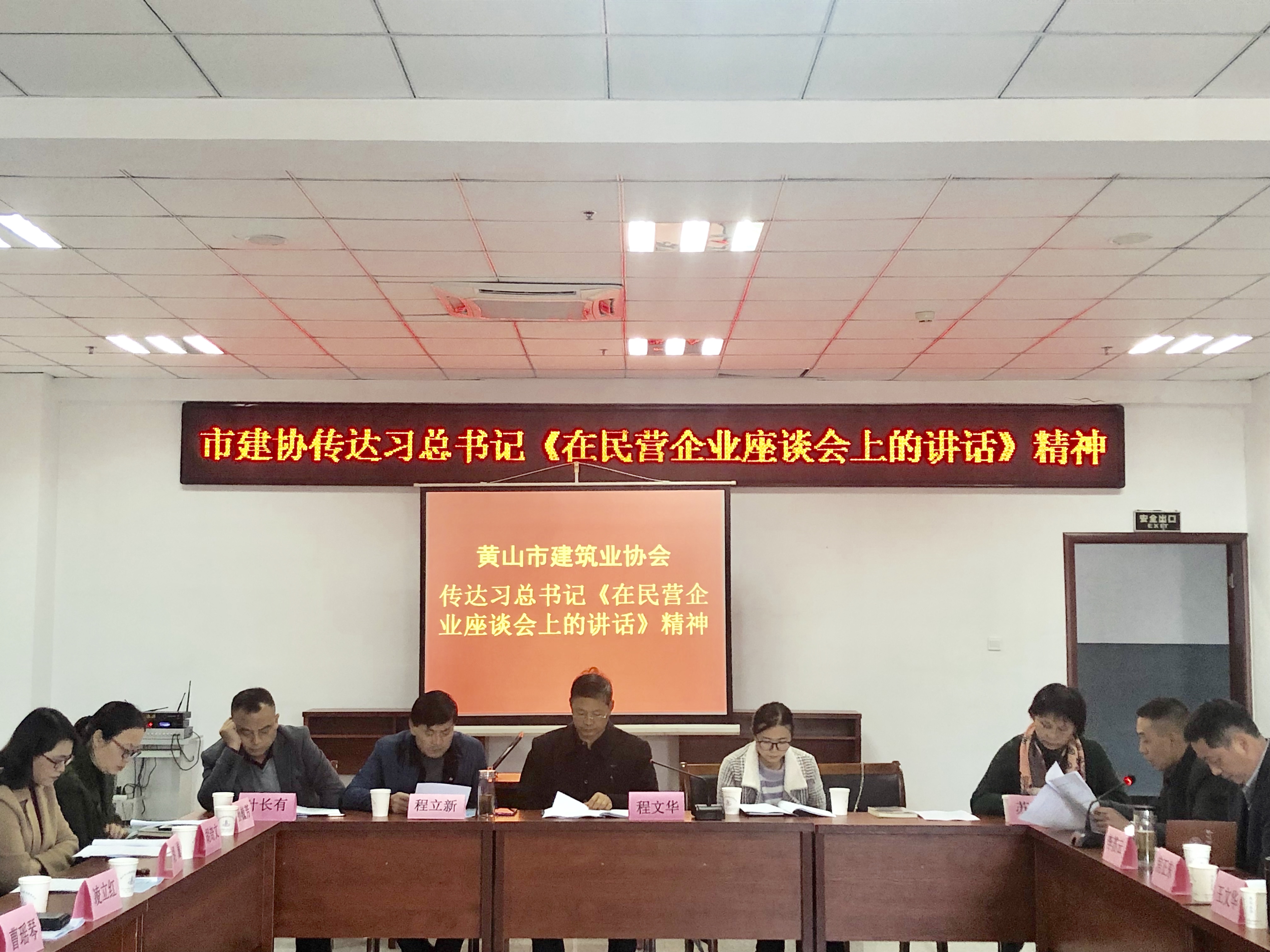 2018年11月29日下午,黃山市建筑業(yè)協(xié)會(huì)在該市徽建控股集團(tuán)會(huì)議室召開(kāi)會(huì)議,專題學(xué)習(xí)習(xí)近平總書(shū)記在民營(yíng)企業(yè)座談會(huì)上的重要講話精神。