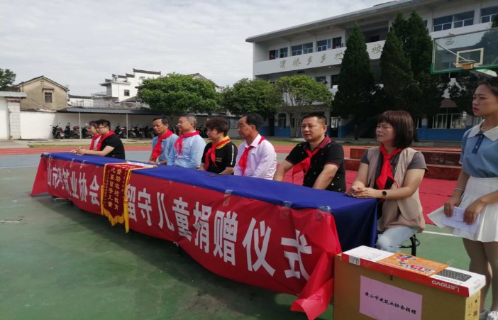 2019年5月29日上午,在市建協(xié)黨支部書記、秘書長程文華的帶領下,協(xié)會副秘書長耿任飛、黃山新洲建設集團黨支部書記李惠明、黃山精英電子公司總經理項建生、黃山萬隆建安公司財務總監(jiān)葉桂紅等一行7人,赴休寧縣渭橋中心小學共同開展了以“愛心資助農村教育、真情心系留守兒童”為主題的捐資助學活動。