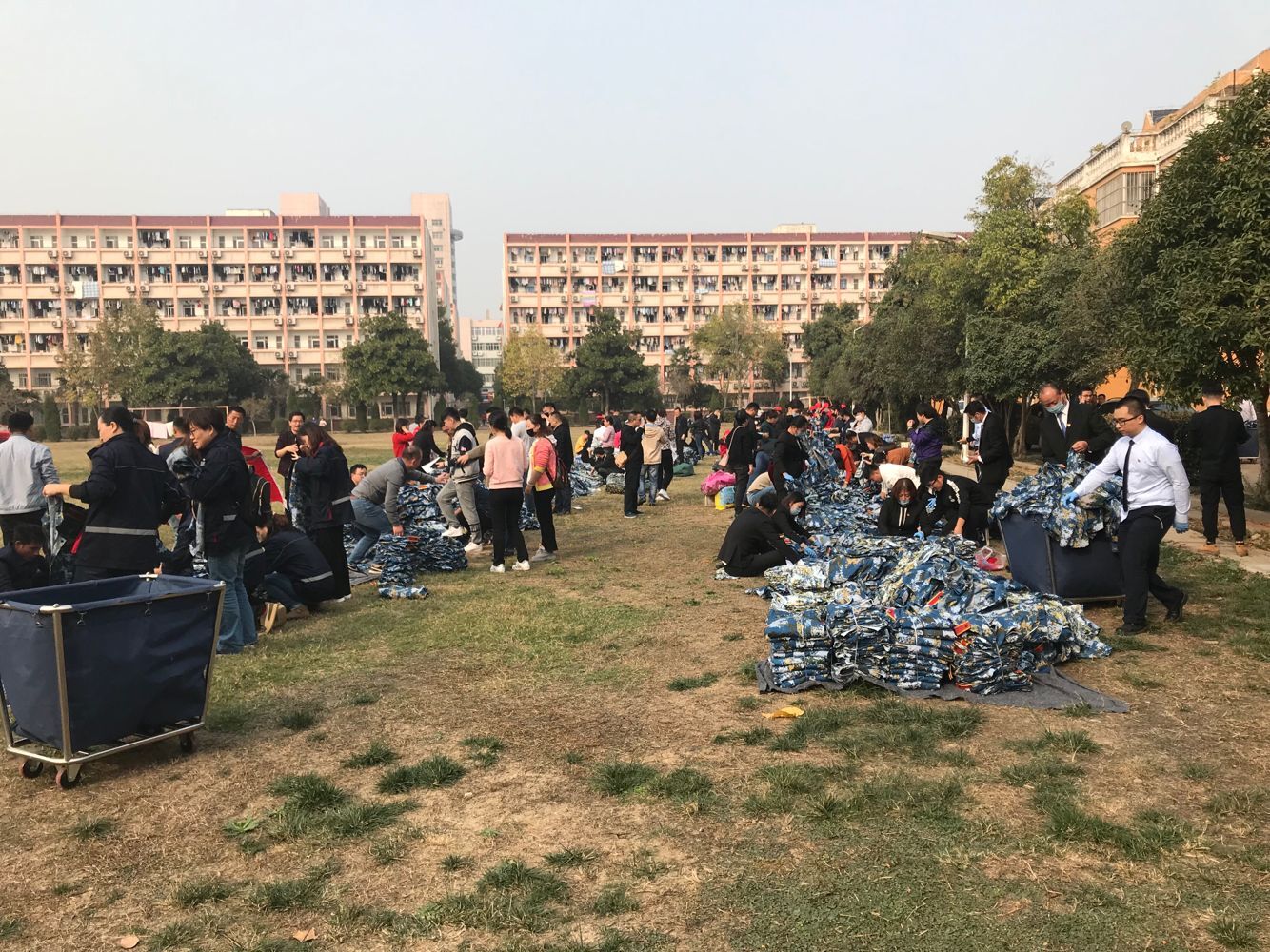 本次志愿服務(wù)主要為衣物分揀、疊衣服、打包等內(nèi)容,主要是為配合安徽財(cái)經(jīng)大學(xué)新生軍訓(xùn)作訓(xùn)服捐獻(xiàn)給我市建筑一線工人兄弟們而開展。待捐贈(zèng)的作訓(xùn)服共4367套13000余件,全部經(jīng)過了清洗、晾曬、消毒;顒(dòng)中,黨員志愿者們來到安徽財(cái)經(jīng)大學(xué)龍湖西校區(qū)中心洗衣房,200余名黨員分為5個(gè)小組,相互配合,衣服運(yùn)輸、分揀、疊衣、打包有序開展。經(jīng)過一個(gè)下午努力,4367套13000余件衣物整理完畢,打包裝車并運(yùn)往指定地點(diǎn)。