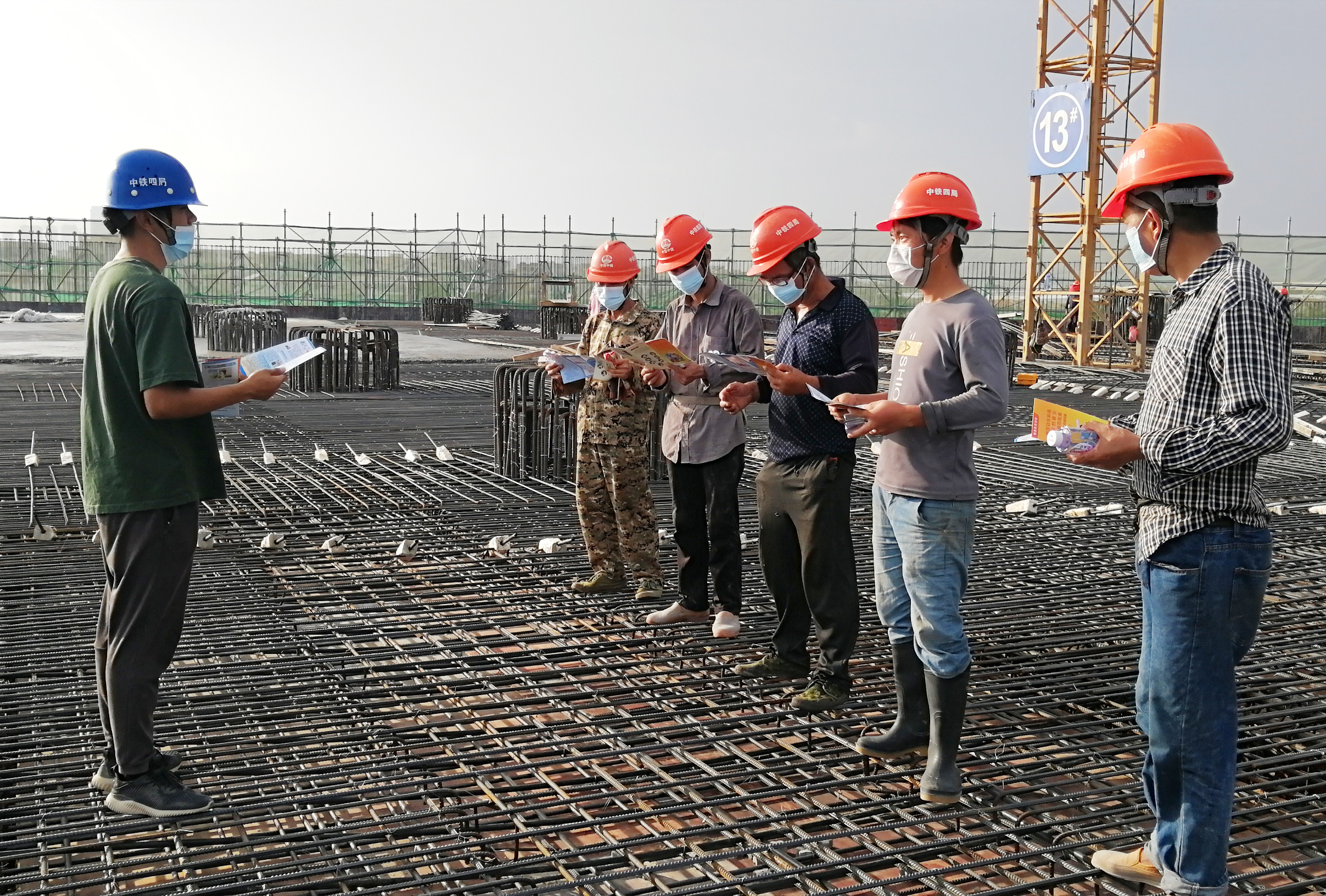 7月以來,中鐵四局廈門軌道交通3號線蔡厝車輛基地項(xiàng)目部結(jié)合持續(xù)高溫天氣實(shí)際,在做好調(diào)整工休時間、優(yōu)化夏季膳食結(jié)構(gòu)、發(fā)放防暑勞保品、送清涼等常項(xiàng)工作基礎(chǔ)上,緊抓施工、防疫、防暑安全管理3個關(guān)鍵點(diǎn),按照每周不少于2次的頻率,堅(jiān)持開展安全健康咨詢和“安全關(guān)愛送一線”等活動,組織關(guān)愛志愿者對作業(yè)工人進(jìn)行安全生產(chǎn)注意事項(xiàng)、防暑降溫常識和疫情防控通用知識等宣講,并現(xiàn)場發(fā)放清涼飲品和防暑藥品,積極夯實(shí)生產(chǎn)生活安全管理防線。圖為安全宣講現(xiàn)場。