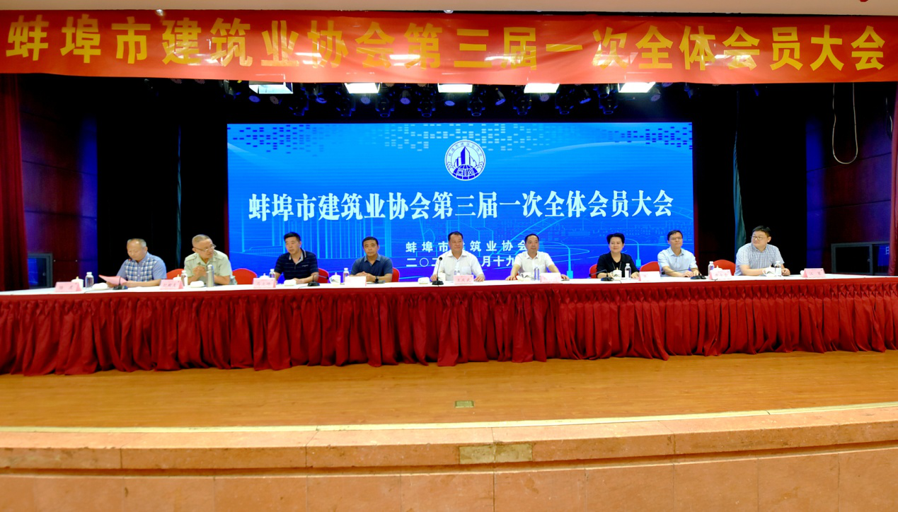 2020年8月19日9時,蚌埠市建筑業(yè)協(xié)會第三屆一次全體會員大會在安徽水利和順大酒店隆重召開。蚌埠市人民政府副市長王慶武,副秘書長徐行忠到會指導并講話,市住建局黨委委員、副局長徐文伯、市民政局民間組織管理局副局長馬立場、市建管處主任唐士全、安徽省建筑業(yè)協(xié)會秘書長馬麗女士、市政工程協(xié)會副秘書長江軍、市住建局、建管處、三縣六區(qū)建設主管部門負責人及339家會員單位出席了會議。會議還收到了來自省內(nèi)合肥市、滁州市、阜陽市、安慶市、黃山市、淮北市等兄弟協(xié)會發(fā)來的賀信賀電。